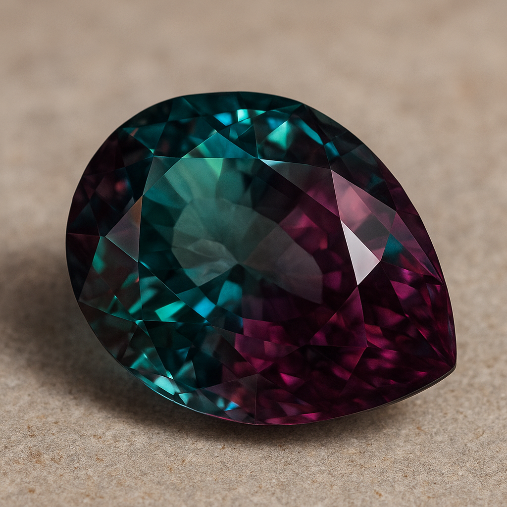 - Color-change strength and balance — the most prized stones show a vivid green in daylight and a strong red in incandescent light, with minimal brown or gray tones.