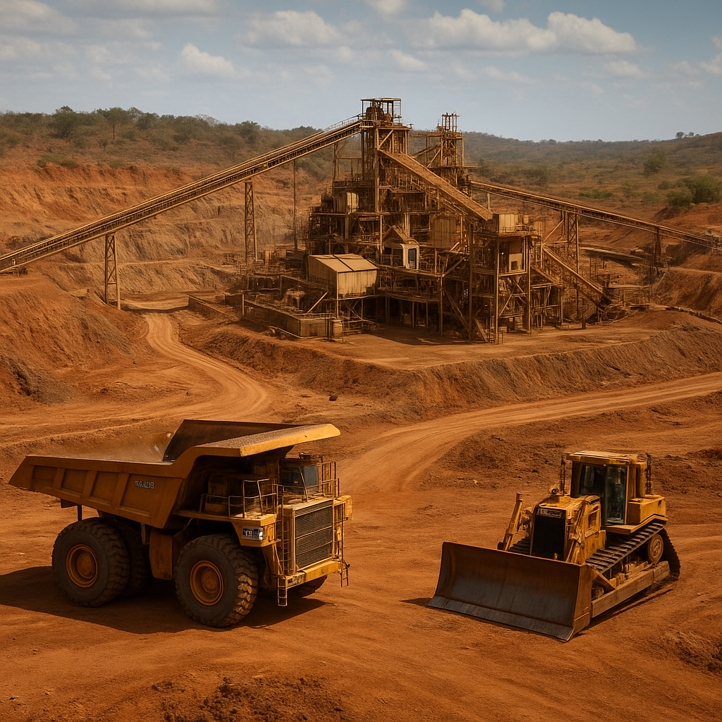 • Open-pit mining: Large-scale drill-and-blast, loading and haulage operations were used to remove overburden and ore. Bench mining and phased pit design allowed for sequential extraction of ore blocks.