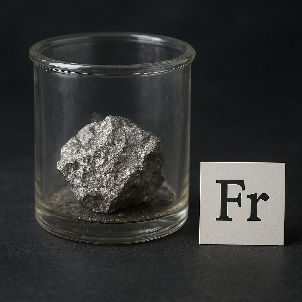 • Educational notoriety: Francium often appears in popular lists of the “rarest elements” or “most radioactive elements,” and it serves as an example in textbooks when discussing periodic trends pushed to extremes.