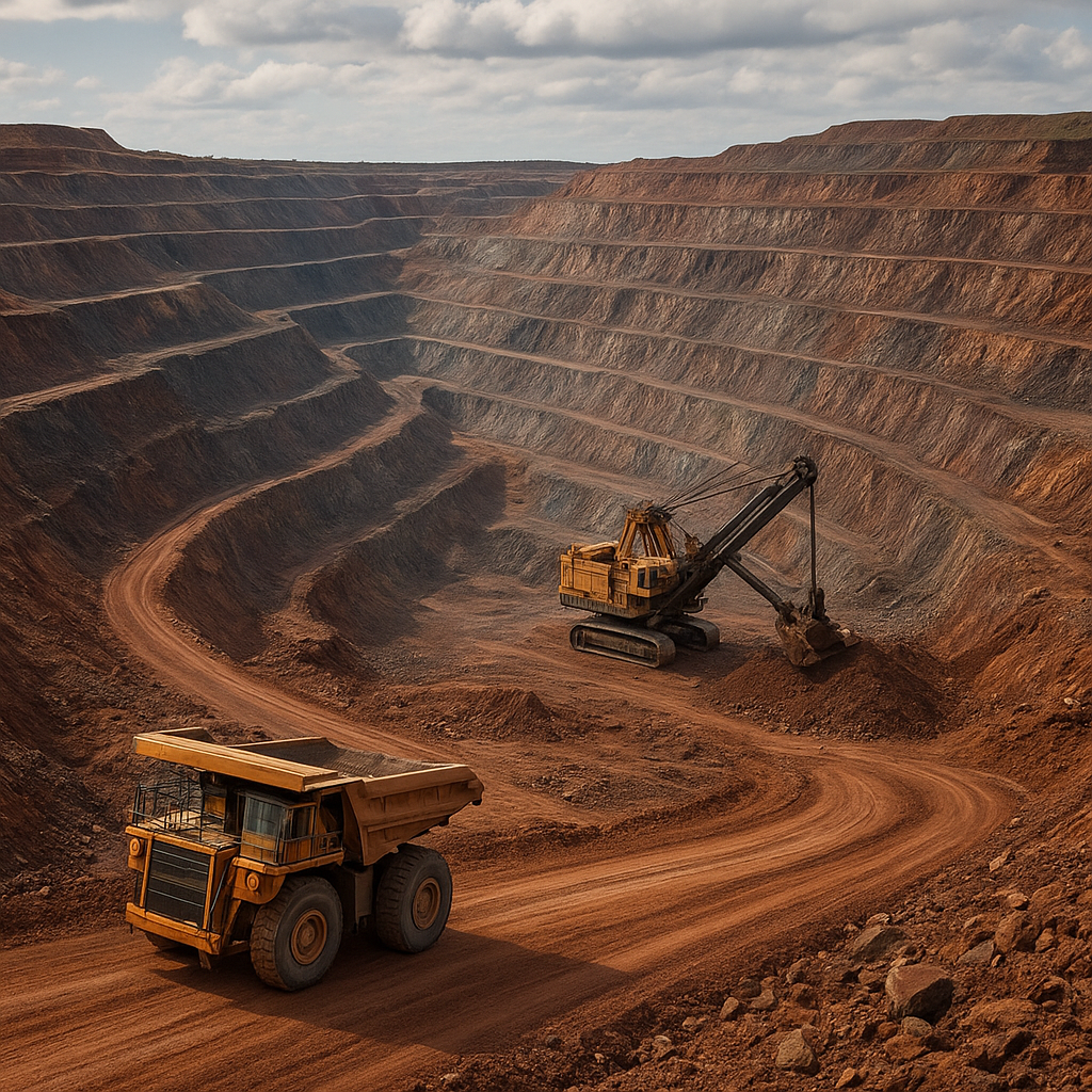 The ore body is large, elongate and steeply dipping, running for several kilometers underground. While the precise geometry varies, it is sufficiently extensive to justify very large‑scale, long‑lived operations. Mining has progressed downward and outward over decades, so the extraction front is often hundreds of meters below the surface. The location and character of the deposit have dictated the use of mass‑mining methods capable of producing very large volumes at competitive cost.