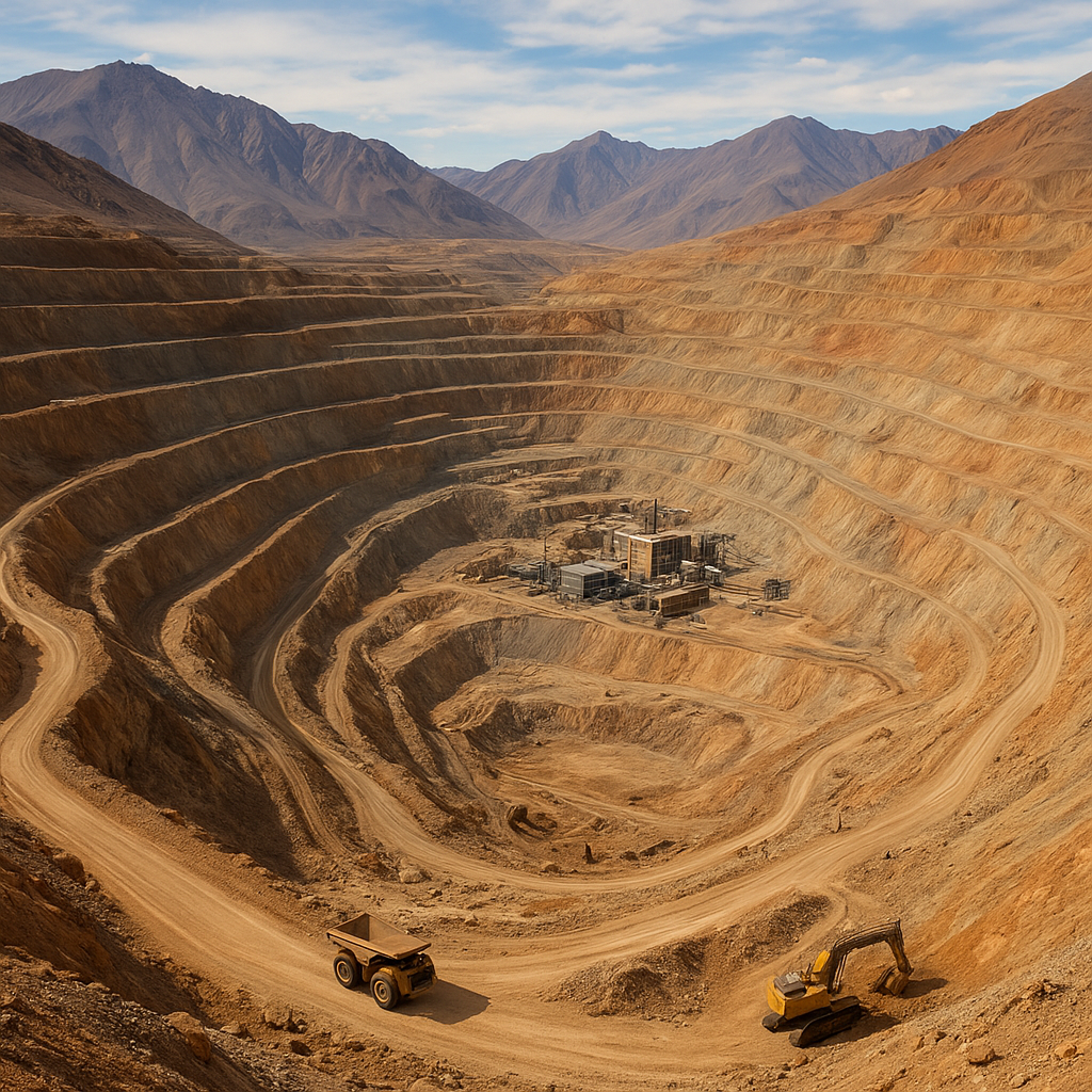 The deposit at Los Bronces is classically a porphyry-type copper system — a large, disseminated body of sulphide mineralization formed by magmatic-hydrothermal processes. Porphyry deposits are prized for their vast tonnages and relatively low to moderate grades, which make them ideal for large-scale bulk-mining techniques. While copper is the principal metal of interest, the ore contains a suite of valuable co-products such as molybdenum, and measurable quantities of gold and silver that are recovered in processing.