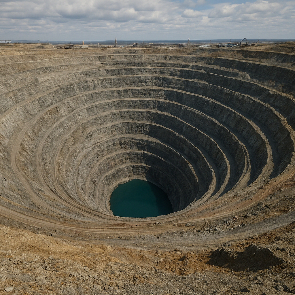 Kimberlite pipes are the primary source of naturally occurring diamonds, and the Mirny pipe was discovered during systematic geological exploration carried out in the mid-20th century. The formation is remarkable not only because it contains economically recoverable concentrations of gem- and industrial-grade diamonds, but also because of the scale of the deformation and excavation required to access them. The local geology is complicated by the presence of continuous permafrost, extreme seasonal variation in temperatures, and the challenges posed by remote Arctic logistics.