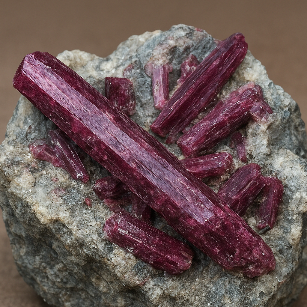 Notable museum and private-collection specimens showcase piemontite in dramatic contrasts: vivid red crystals perched on contrasting host rock, or delicate prismatic forms that reveal twinning and termination faces under magnification. These specimens often become highlights of mineral exhibitions because of their unusual color for an epidote-group mineral.
