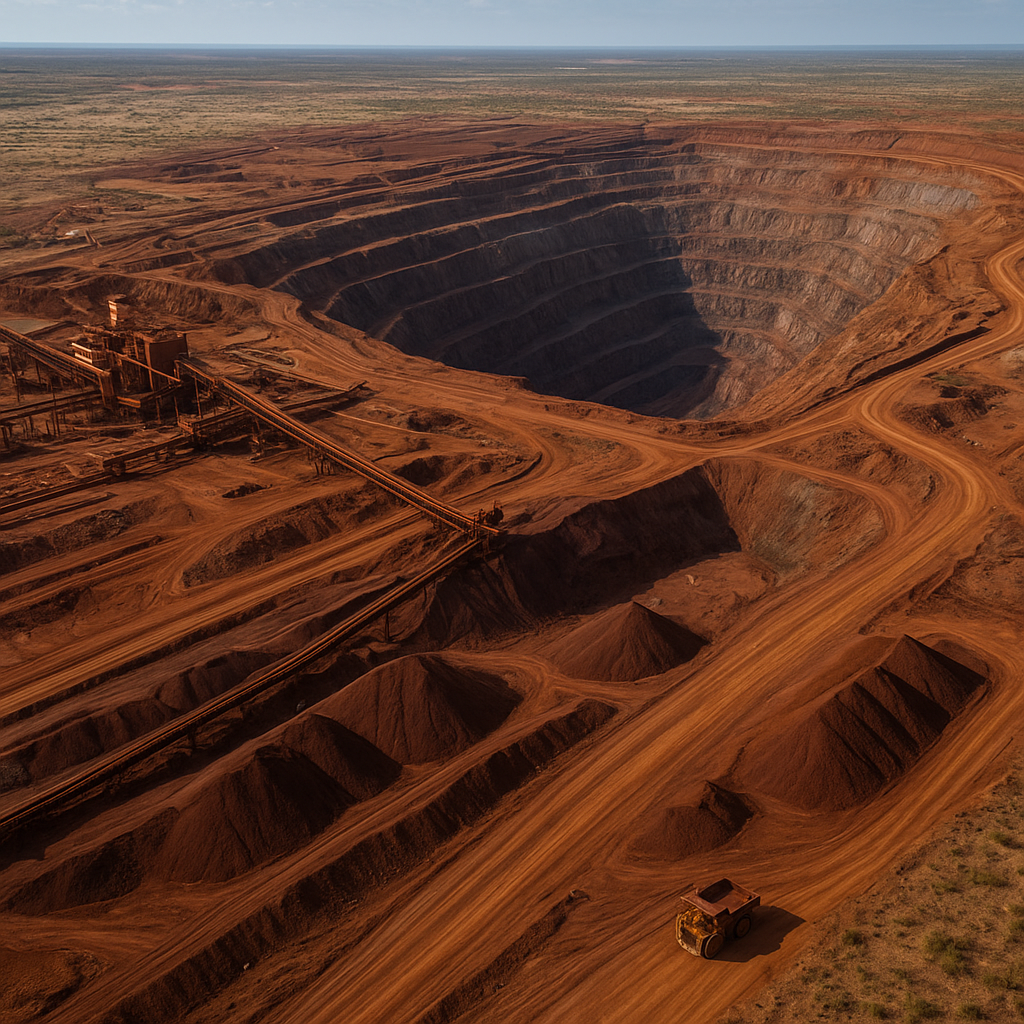 The mine sits in remote northwestern Western Australia, embedded in the mineral-rich landscape of the Pilbara. The site is associated with ancient banded iron formations that have given the region its extraordinary concentration of high-quality ore. The terrain is characterized by arid plains, scattered ranges, and sparse vegetation, conditions that pose both logistical and environmental management challenges for any large industrial project.