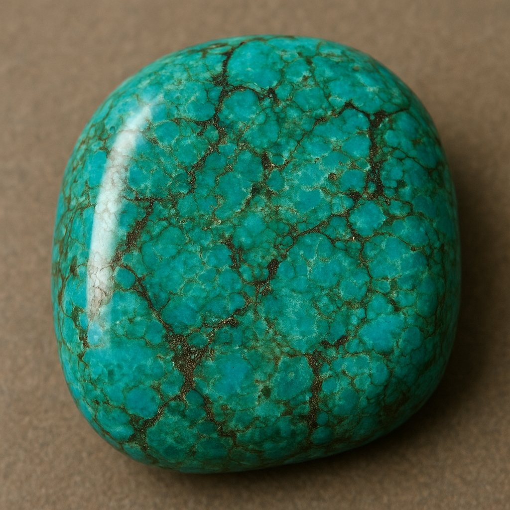Turquoise typically occurs as nodules, crusts, or veins within host rocks such as limestones, sandstones, and altered volcanic rocks. Its texture is often compact and cryptocrystalline, which makes it suitable for carving and cabochon cutting. Hardness generally ranges from about 5 to 6 on the Mohs scale, making turquoise relatively soft compared with many gemstones. Its porosity and sensitivity to solvents and oils are important factors in both care and market treatment.