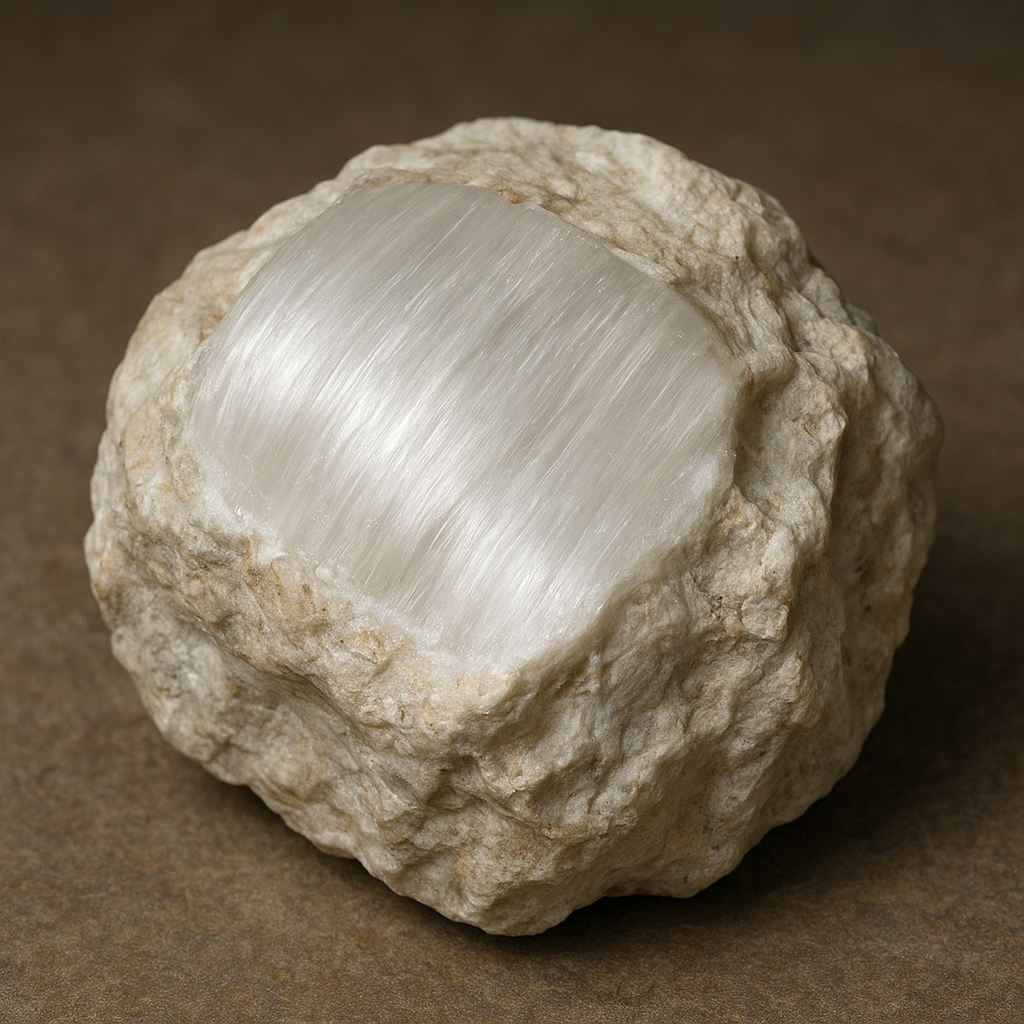 Key physical characteristics include a relatively low hardness (typically around 2.5 on the Mohs scale), a light specific gravity, and a generally translucent to white coloration. When cut and polished perpendicular to the fiber axis, ulexite can transmit printed images or patterns with surprising clarity, an effect produced by the alignment of tubular channels and internal reflection — a natural analog to the modern fiber-optic principle.
