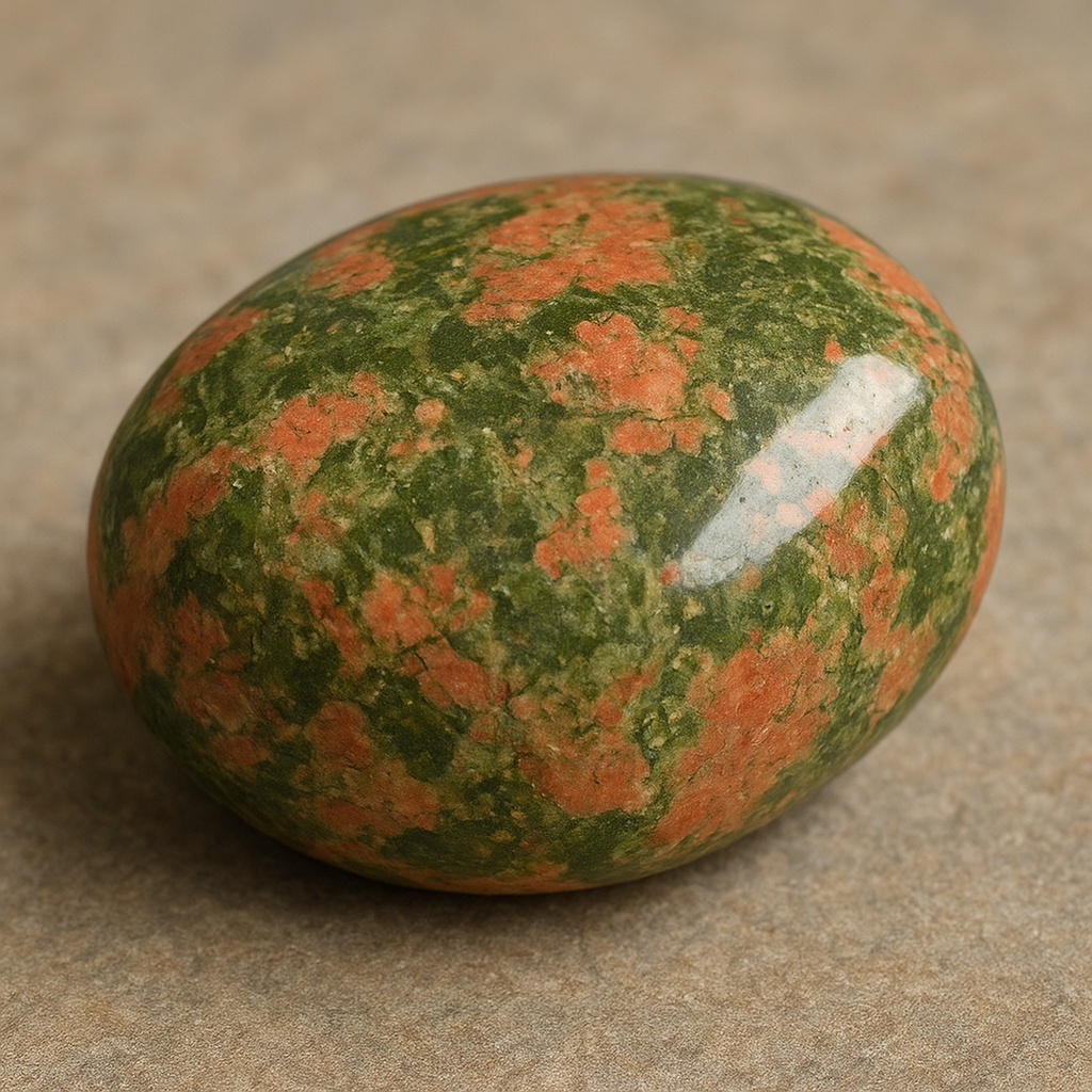 - Labeling: Not all green-and-pink stones sold as „unakite” come from the classic Unaka deposits. Sellers sometimes apply the name to similar epidotized granites from other countries. When provenance is important, ask for locality information.